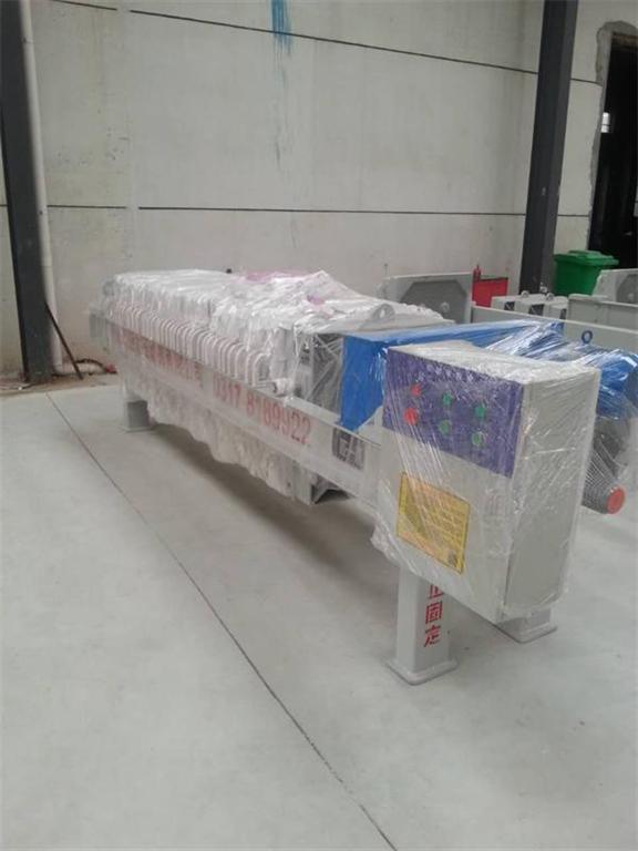 止推板和機座由兩個縱梁連接,構成機架,機架上靠近壓緊裝置一端放置壓緊板。濾框和濾板在止推板與壓緊板之間依次交替排列,濾框與濾板間夾著濾布。壓緊后,濾框與其兩側濾布間形成濾室。濾布介質同時起著密封作用,防止濾框與濾板接觸面間的泄漏。濾布為棉織或合成纖維工業濾布,尺寸應大于板框外圍尺寸,密度及層數視料液而定。濾板和濾框兩側均設吊耳,安裝時懸掛于兩縱梁上。濾框是中空的,濾板兩側表面有溝槽。在濾板和濾框的右上角均有一小孔,安裝后,這些小孔便形成了濾漿通道。濾框上還有與該小孔相連的通道,將濾漿導入框內。過濾時濾液穿過濾布進入濾板,濾渣積沉于濾布上,在框內形成濾餅。