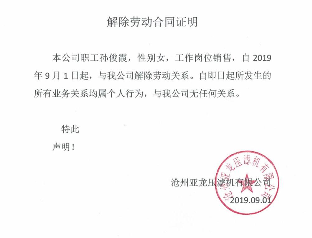解除勞動(dòng)合同聲明