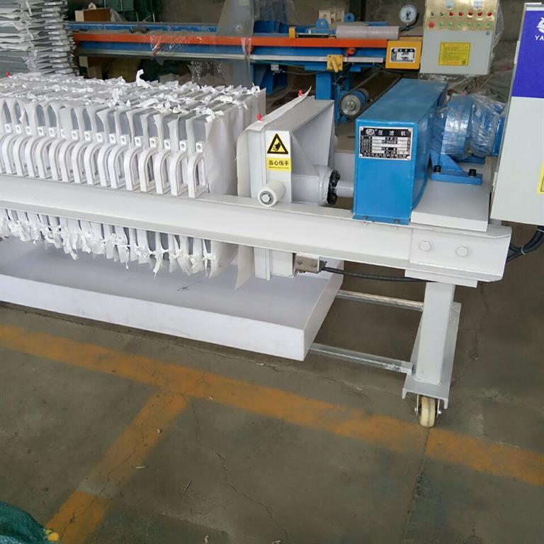 設備硬件,除了過濾室有點特殊之外,其余的一般都可以正常運行,唯獨過濾室,它是由一塊一塊分開的濾板和濾布有機排列,同時在足夠大的壓力作用下,形成過濾室,而且還要形成一個能承受反作用力的密閉空間。廂式壓濾機濾室有一塊平板濾板和一塊中空的濾框組成,濾布固定在板框上的,這是早期主要壓濾機形式,而廂式壓濾機的濾室是由相鄰兩塊凹陷的濾板構成,主要優點是_換濾布方便,缺點是效率低、過濾效果不好、濾板容易壞。板框式壓濾機交替排列的濾板和濾框構成一組濾室。濾板的表面有溝槽,其凸出部位用以支撐濾布。濾框和濾板的邊角上有通孔,組裝后構成完整的通道,能通入懸浮液、洗滌水和引出濾液。污泥壓濾機板框壓濾機對于濾渣壓縮性大或近于不可壓縮的懸浮液都能適用。適合的懸浮液的固體顆粒濃度一般為10%以下,操作壓力一般為0.3~0.6兆帕,特殊的可達3兆帕或_高。如果過濾室形成機構不能承受過濾液對其的反作用力,自然大量的過濾液_會從縫隙中滲漏出來,而不同全部的通過濾布出來,而沒有經過濾布的液體,自然_不能發生固體和液體的分離,那么廂式壓濾機基本的作用_不能實現,那__談不上設備的工作了。