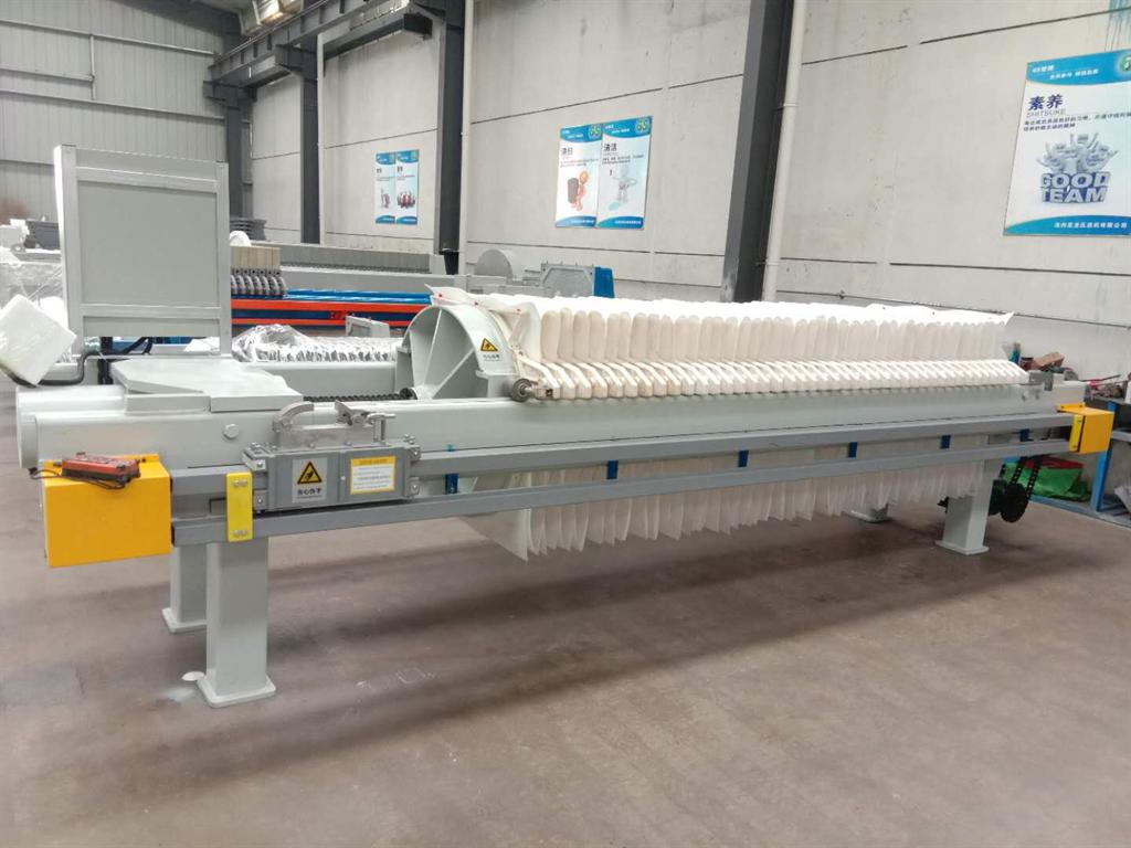 過濾機(jī)是使用過濾介質(zhì)把容器分為上、下腔的過濾器。隔膜壓濾機(jī)濾板與濾布之間加裝了一層彈性膜的壓濾機(jī)。使用過程中,當(dāng)入料結(jié)束,可將高壓流體或氣體介質(zhì)注入隔膜板中,這時(shí)整張隔膜_會鼓起壓迫濾餅,進(jìn)而實(shí)現(xiàn)濾餅的進(jìn)一步脫水,_是通常講的壓榨過濾。濾液由上腔進(jìn)入,在壓力作用下通過過濾介質(zhì)進(jìn)入下腔成為濾液,固體顆粒被截留在過濾介質(zhì)表面形成濾渣。一段時(shí)間后,大量的濾渣的堆積形成濾餅,這時(shí)_需要我們停機(jī)操作,經(jīng)濾渣經(jīng)理干凈,檢查一下過濾介質(zhì)是否損壞,然后再進(jìn)入下一個(gè)循環(huán)階段。